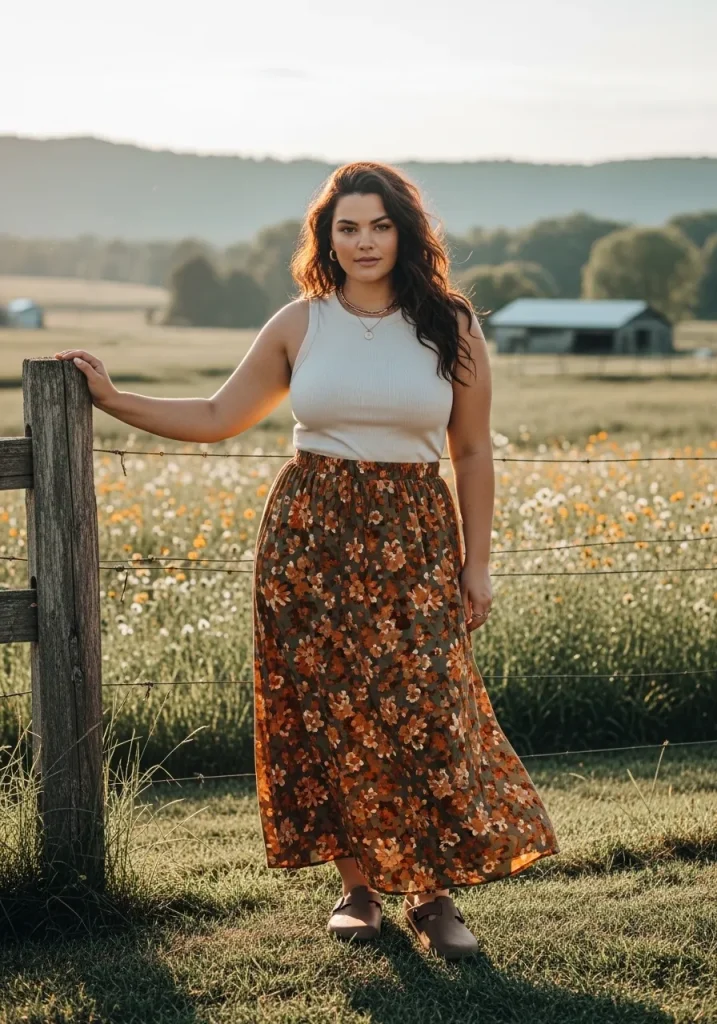 A maxi skirt paired with a tank top and Birkenstock clogs creates a soft and flowy outfit that feels effortlessly stylish. The skirt adds movement and femininity, while the clogs keep the look casual and practical for everyday wear.
