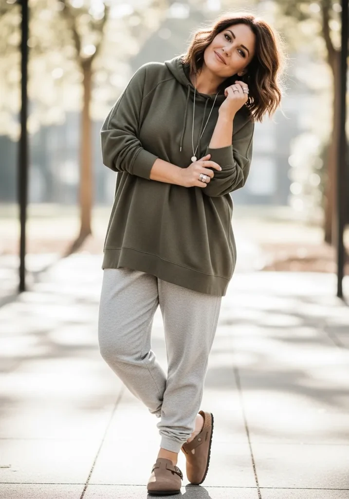 Pairing Birkenstock clogs with a hoodie and joggers creates a cozy and sporty outfit that feels perfect for laid-back days. The relaxed fit of the joggers and hoodie adds comfort, while the clogs give the outfit a trendy edge.