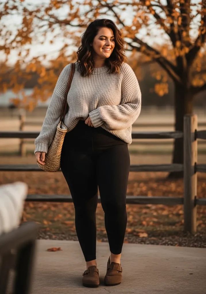 Pairing Birkenstock clogs with an oversized sweater and leggings creates a cozy and comfortable outfit that feels perfect for relaxed days. The oversized fit adds warmth and softness, while the leggings keep the look balanced and flattering.