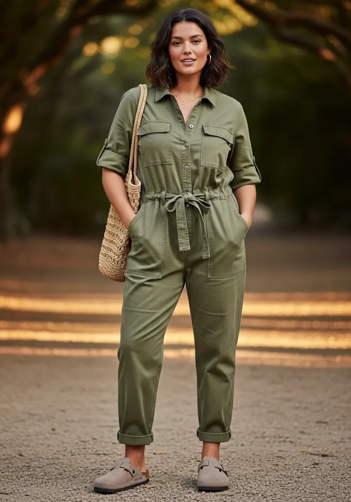 A utility jumpsuit paired with Birkenstock clogs creates a bold and practical outfit that feels modern and stylish. The jumpsuit offers a structured silhouette while the clogs keep the look relaxed.