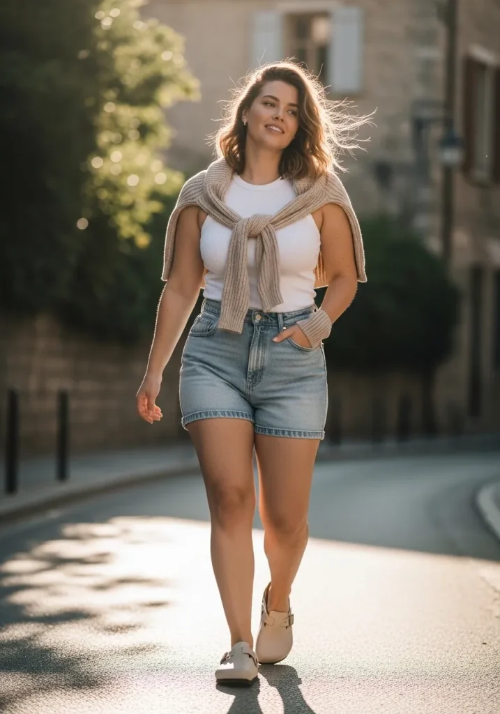 You can layer a lightweight shirt or kimono for added dimension. Accessories like sunglasses and a tote bag complete the look. It’s perfect for casual summer days or vacations.