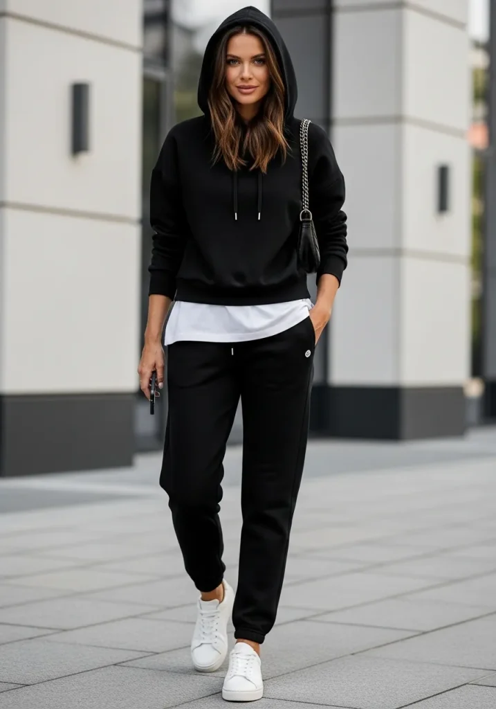 4. Black Sweatpants with Sneakers and a Hoodie