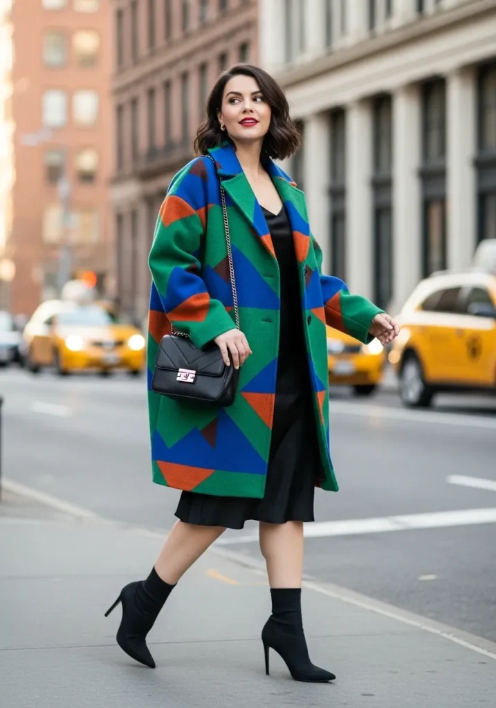 Choose coats in bright colors or unique patterns and layer them over a simple dress. Keep the rest of the outfit understated so the coat remains the focal point. Add classic heels or boots for a polished finish.