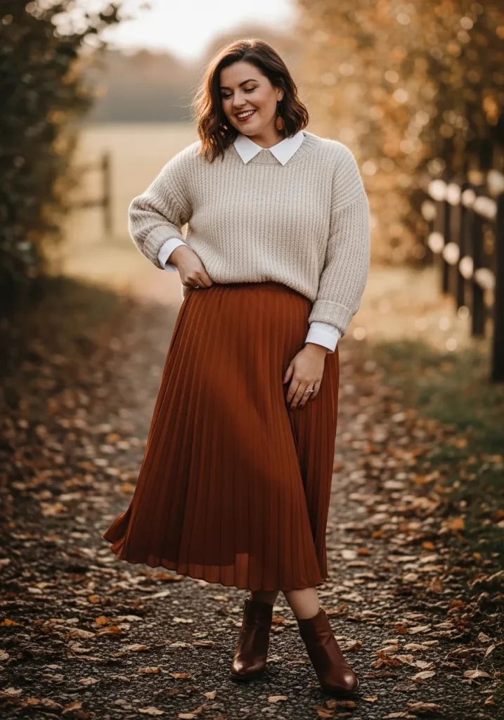 Choose soft knit textures and pair them with structured skirts for contrast. Add tights and ankle boots to complete the look. This outfit is both practical and stylish, making it easy to wear on repeat.