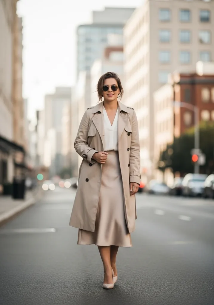 Stick to neutral tones like beige or camel for versatility. Add heels or loafers and a structured bag to complete the outfit. This look is perfect for transitional weather and always feels elegant.