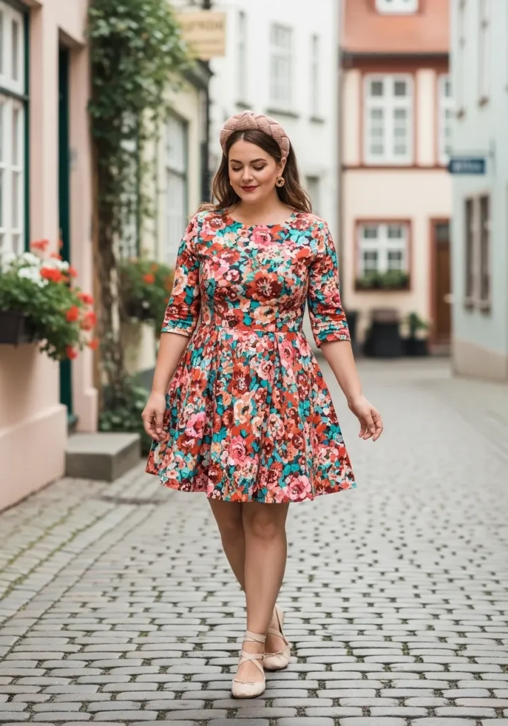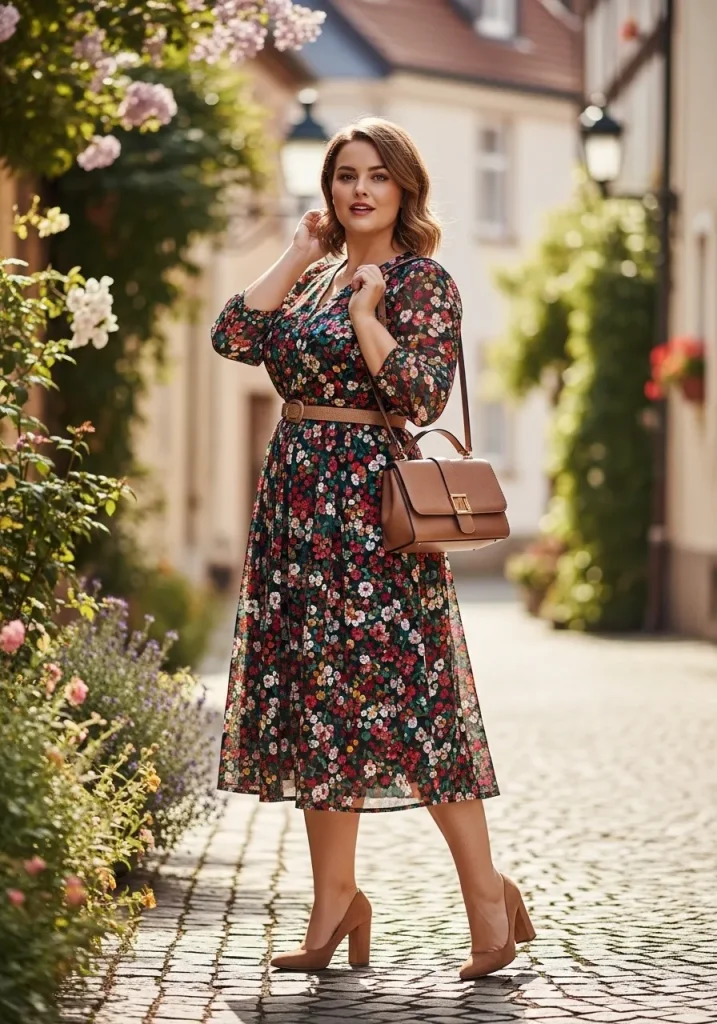 Pair your floral dress with a belt, structured handbag, and classic heels. This combination creates a balanced outfit that feels both delicate and put together. It’s perfect for brunch or daytime events.
