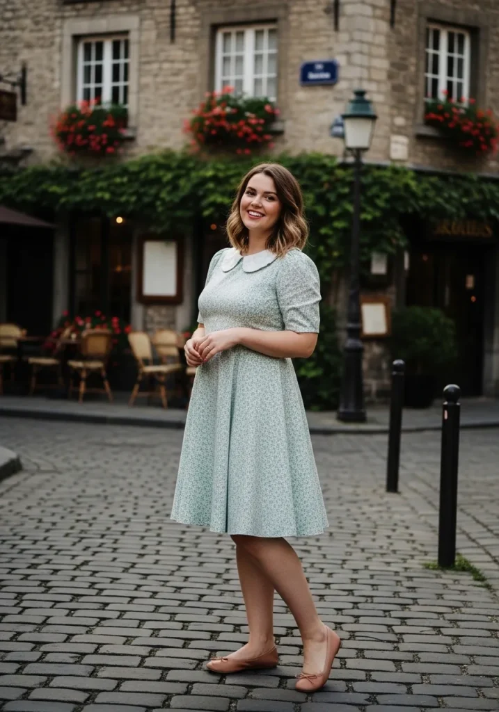 Opt for classic colors like black with a white collar or soft pastels for a more feminine feel. Pair it with ballet flats or low heels and minimal accessories to let the dress shine. This look is simple, sweet, and effortlessly chic for everyday wear.