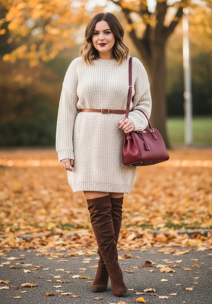 A sweater dress is the perfect mix of cozy and chic, especially when styled with a belt to define the waist. This look feels relaxed yet polished, making it ideal for fall and winter days when you want comfort without sacrificing style.