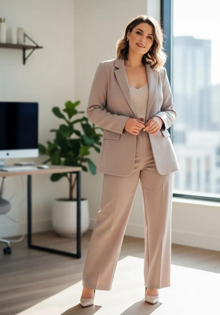 You can style this outfit with a simple fitted top underneath and finish with heels or loafers. Keep accessories minimal for that quiet luxury feel. This look is perfect for work, meetings, or elevated everyday wear.