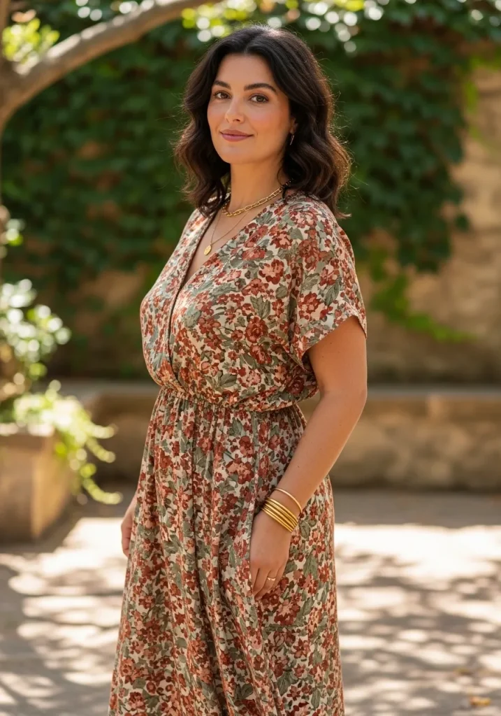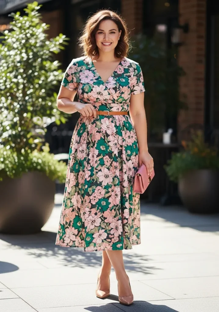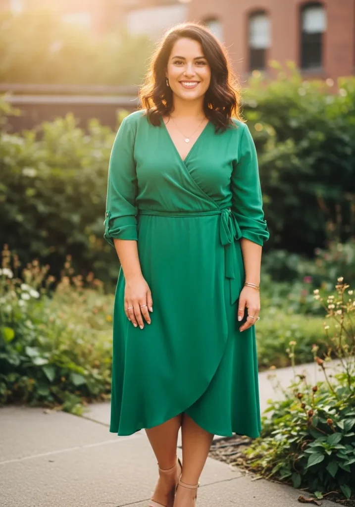 A wrap dress is flattering on almost every body type and creates a soft, feminine silhouette. The wrap detail defines the waist while still keeping the outfit comfortable and elegant.