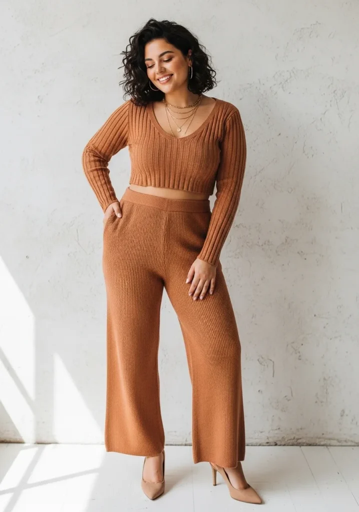 A knit set creates a cozy yet refined look that feels both comfortable and stylish. The matching pieces make the outfit look intentional and polished.