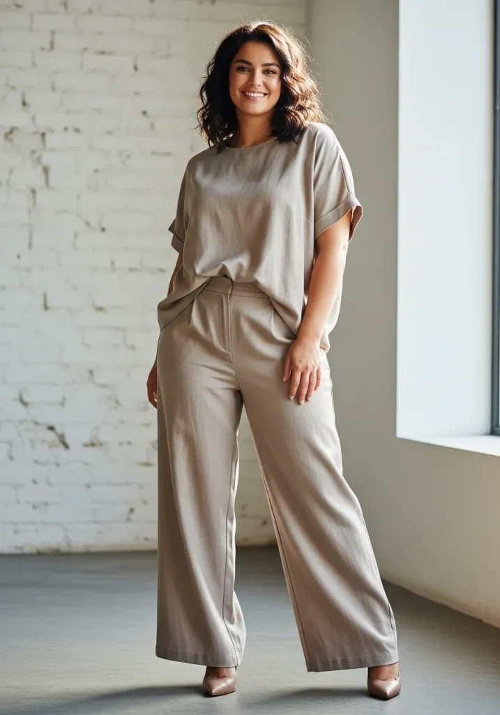 You can style this outfit with heels and a structured handbag for a polished finish. Neutral tones work especially well for that “quiet luxury” vibe. This look is perfect for office wear, brunch, or elevated everyday styling.