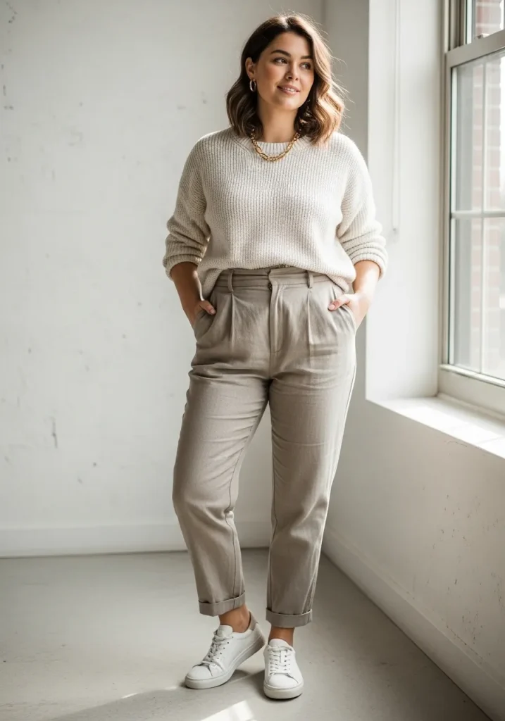 You can mix textures like linen, cotton, or knit to add depth. Pair with minimal accessories and classic shoes. This outfit is perfect for everyday classy styling.