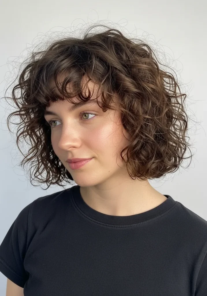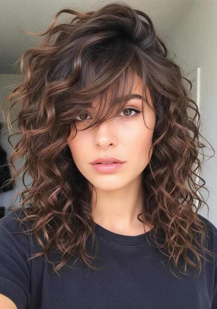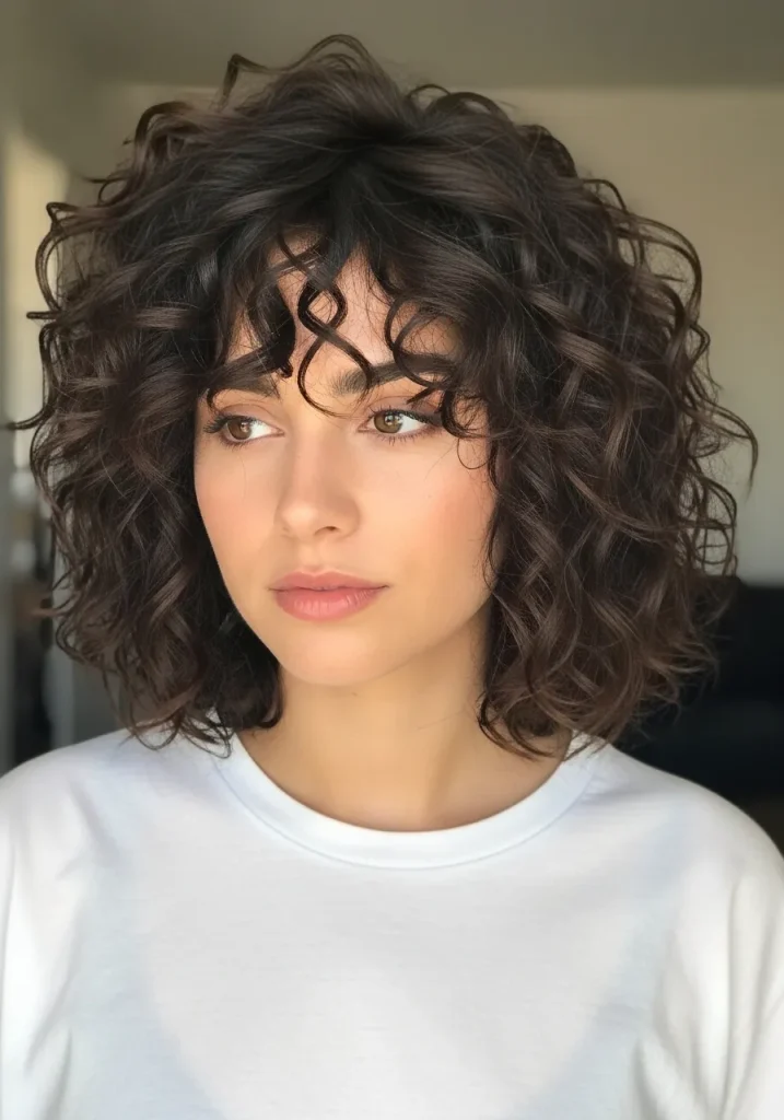 Keep the bangs slightly longer and blend them seamlessly into the rest of your hair. Use a curl-enhancing product to maintain definition while keeping the overall look soft and natural. This hairstyle feels trendy, feminine, and easy to wear on a daily basis.