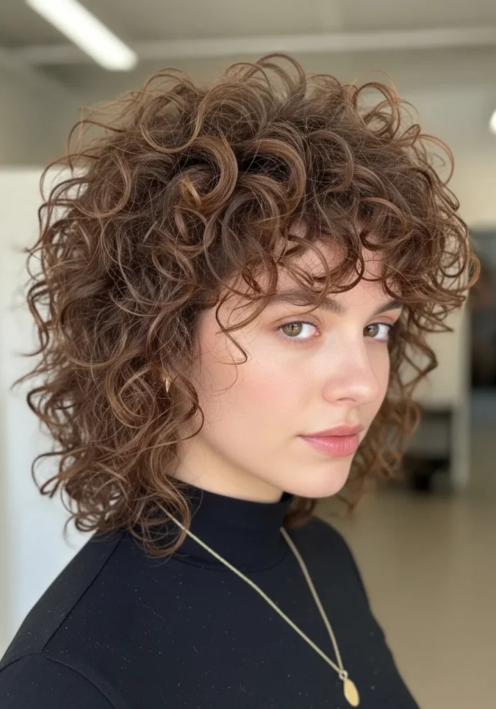 Curly Shag with Volume on Top