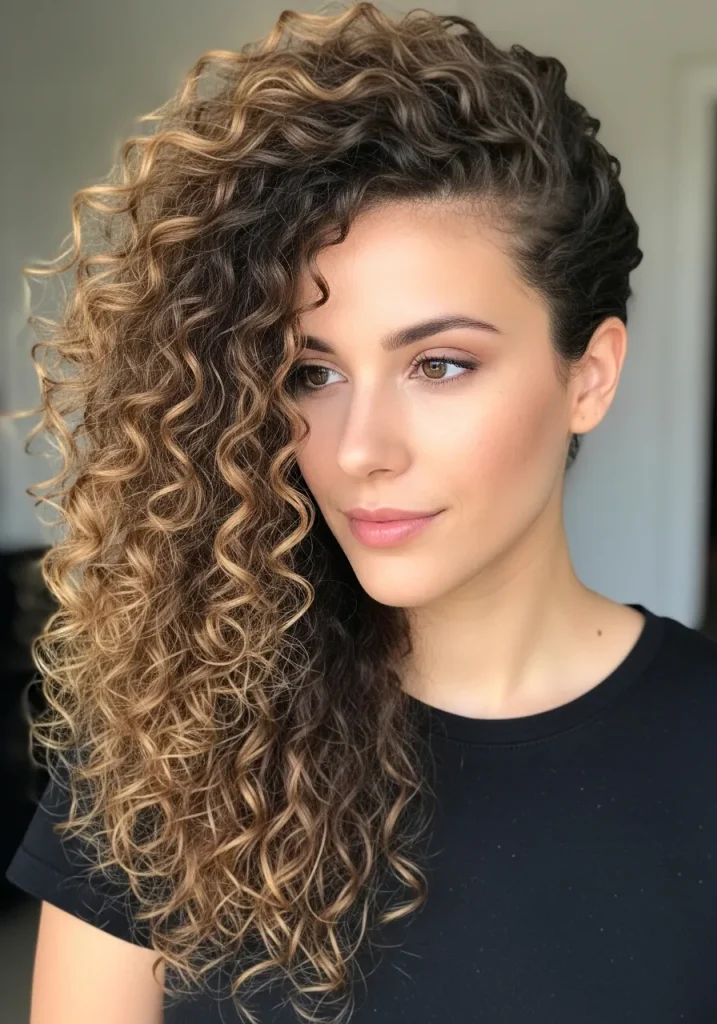 Curly Hair with Side Part and Layers