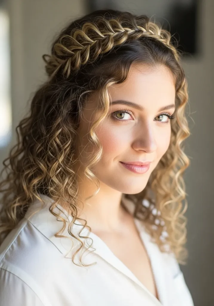Curly Hair with Braided Crown Detail