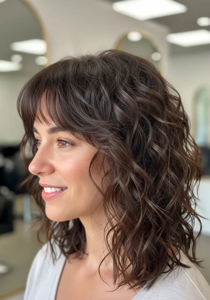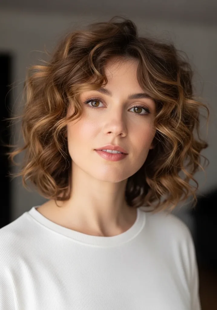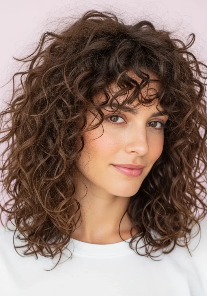This hairstyle works beautifully with curtain bangs or soft fringe to frame the face. You can enhance the texture using a lightweight mousse and let your curls air dry for a natural finish. It’s an ideal choice for anyone who wants a trendy yet low-maintenance curly hairstyle.