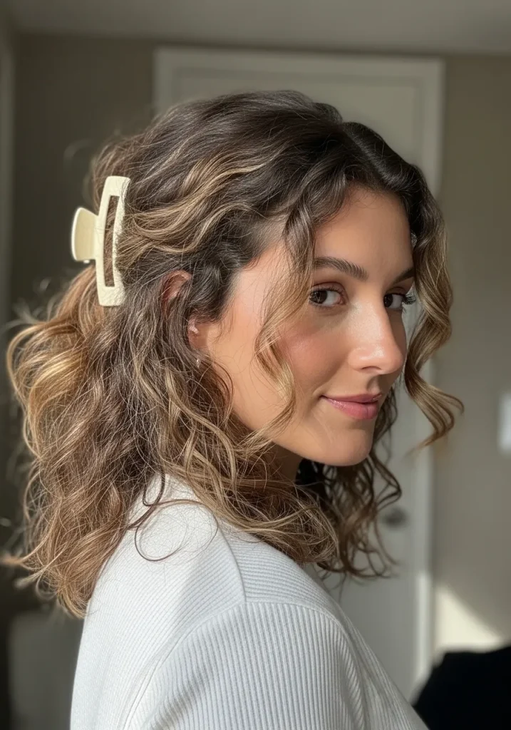 Curly Hair with Claw Clip Style
