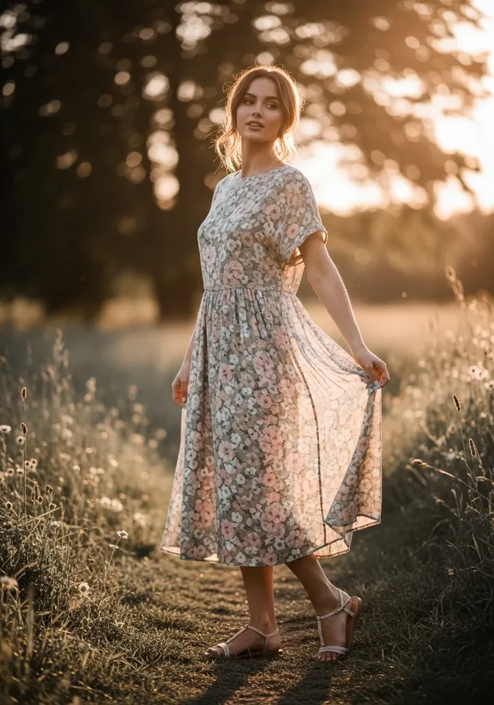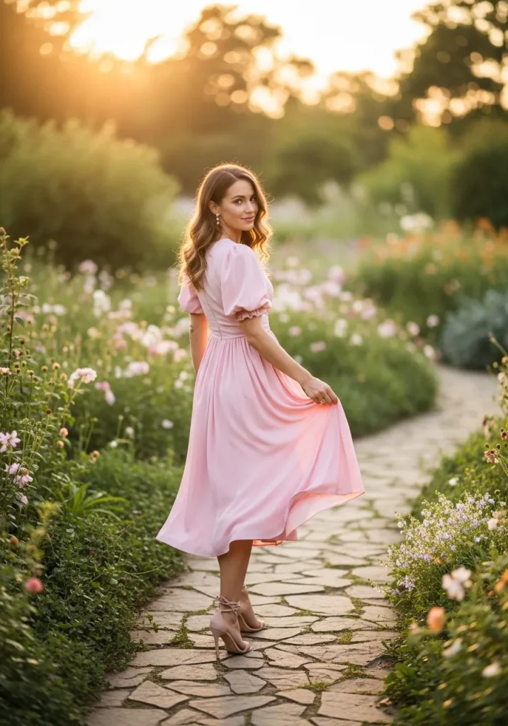 Choose dresses in soft fabrics with subtle patterns or pastel tones for a dreamy look. Pair the outfit with delicate heels or elegant flats to maintain balance. A small handbag and simple earrings can finish the outfit beautifully.