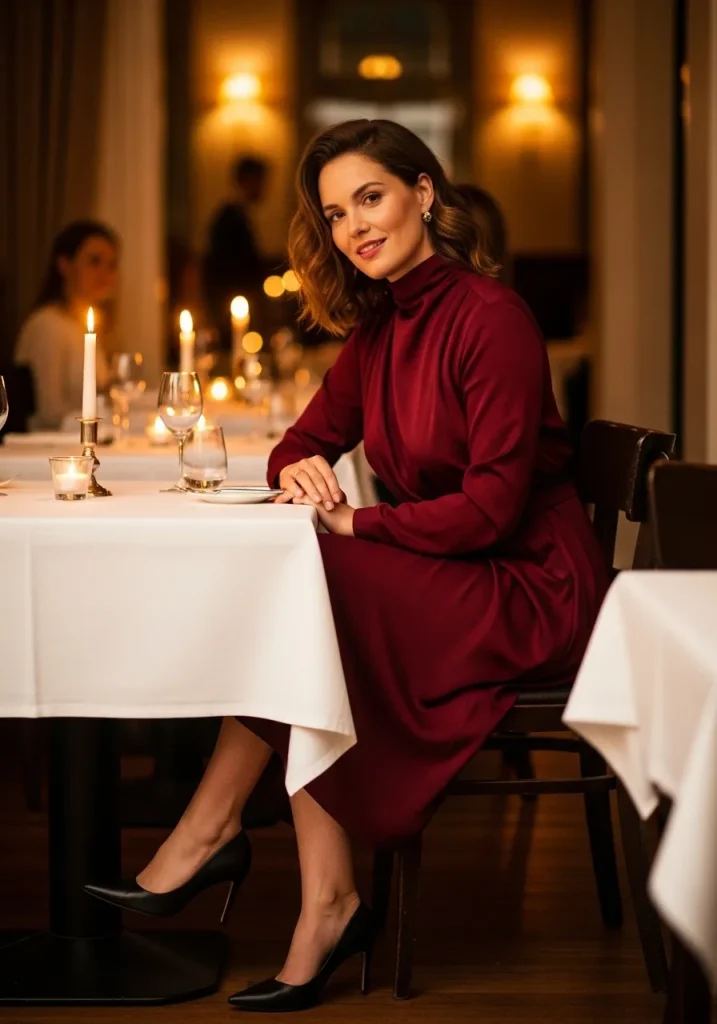 A velvet dress creates a luxurious and romantic date night look that feels perfect for evening occasions. The rich texture of velvet adds depth and elegance to the outfit, making it ideal for special dinners or seasonal events.