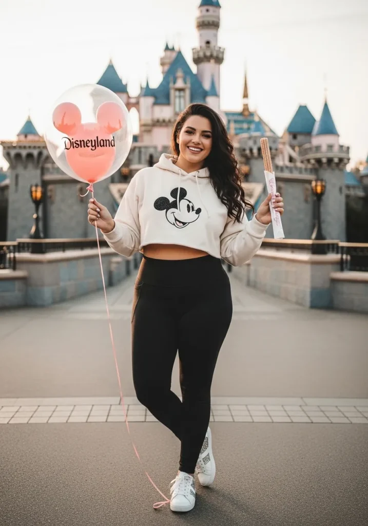 A Disney hoodie paired with leggings creates one of the most comfortable outfits you can wear to Disneyland. The hoodie keeps you cozy, while the leggings allow easy movement throughout the day. This combination is ideal for long walking hours and active rides. It feels relaxed but still fits perfectly with the theme park vibe. The overall look is casual and practical.