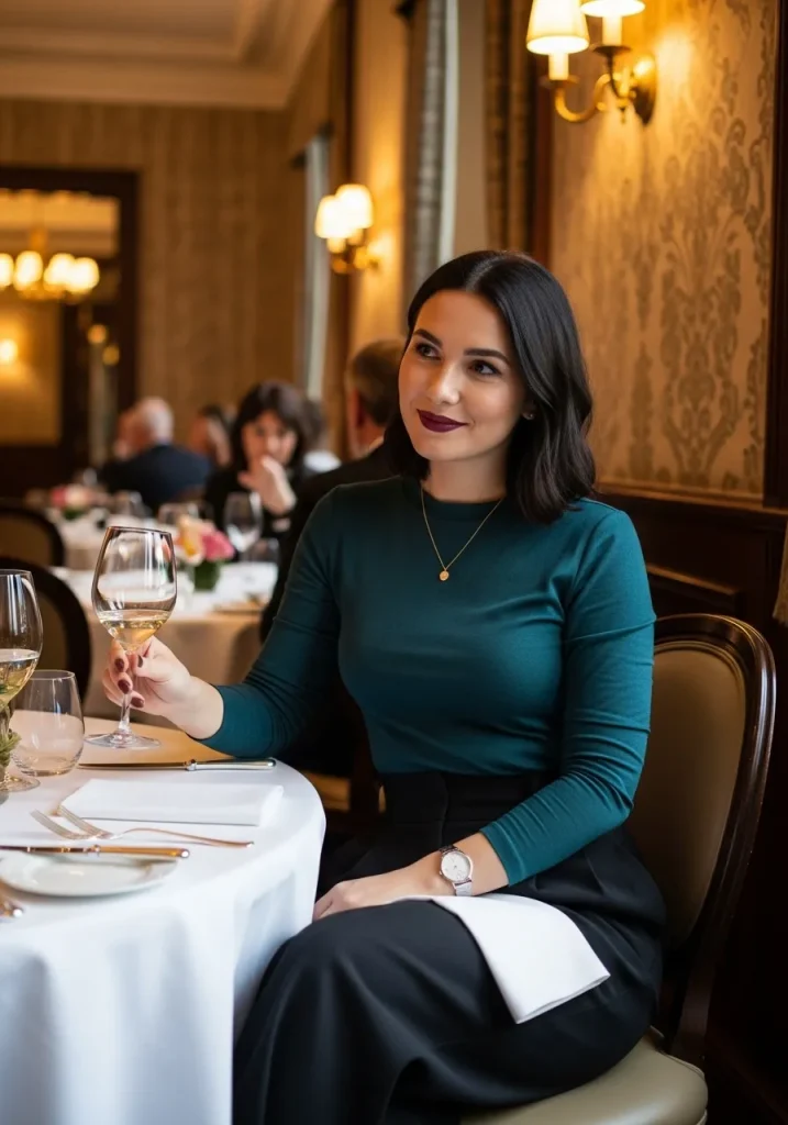 Layer with a coat or knit cardigan for colder weather, keeping the look aligned with Style Inspiration Winter. This outfit creates a beautiful Aesthetic Look without appearing overstyled. It’s especially flattering for those seeking a Mid Size First Date Outfit that highlights comfort and movement.