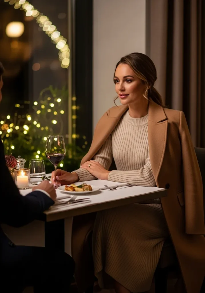 This outfit checks all the boxes for Date Night Outfit Classy while remaining practical for colder weather. If you’re wondering What To Wear To A First Date that feels timeless and chic, this is a reliable option.