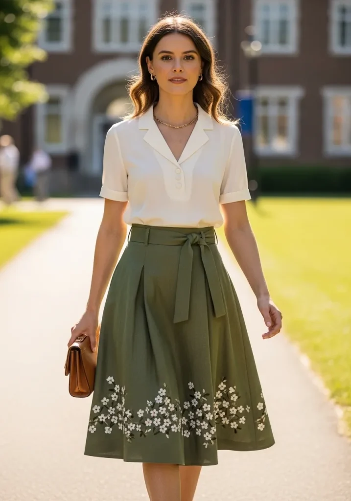 Choose neutral colors like beige, gray, or pastel tones for a sophisticated feel. Pair it with simple, elegant shoes like flats or low heels. This outfit is perfect for those attending an outdoor or daytime graduation event, providing the perfect mix of comfort and elegance without sacrificing style.