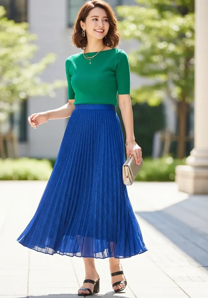 12. Pleated Midi Skirt with a Fitted Top