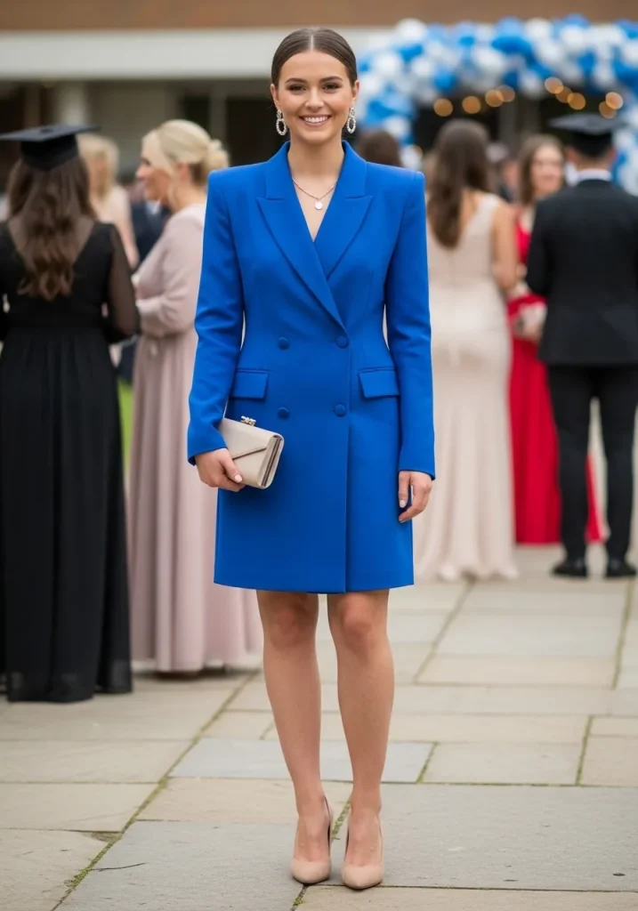 If you’re looking to make a bold fashion statement, a blazer dress can be a perfect choice. Combining the structure of a blazer with the femininity of a dress, this outfit offers a fresh twist on the typical graduation guest look. A blazer dress in a bright color like red, emerald green, or cobalt blue will ensure you stand out in the crowd.