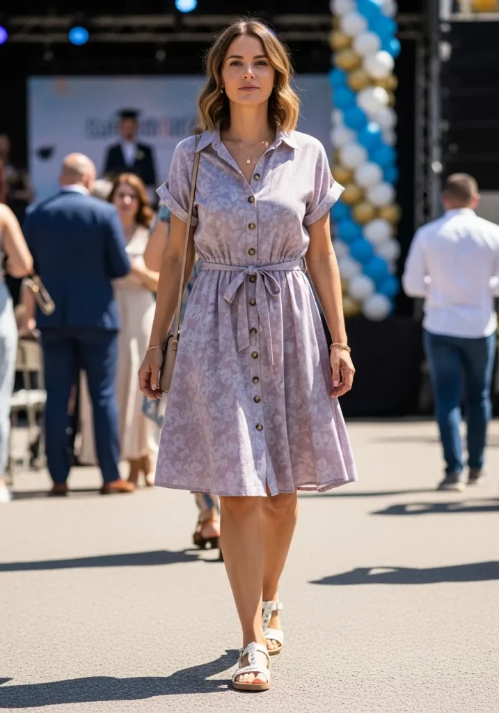 If you’re attending a more casual or outdoor graduation, a button-up dress can be a great option. The structured, simple design of a button-up dress offers both comfort and style, making it an ideal choice for guests attending a morning graduation. A button-up dress with a soft, flowy skirt gives the outfit a relaxed vibe, while the buttons add a subtle element of sophistication.