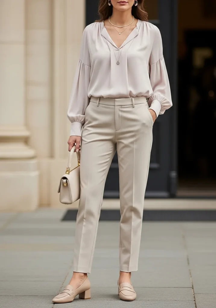 4. Tailored Pants and Blouse Combo for a Smart Casual Look
