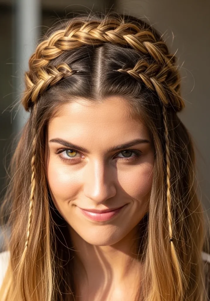 To create this hairstyle, start by dividing your hair into two sections, braiding each section loosely, and then pinning them across the top of your head. The result is a stunning braid crown that’s both stylish and practical, keeping your hair out of your face while showcasing your length.