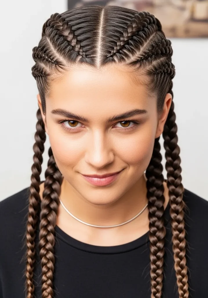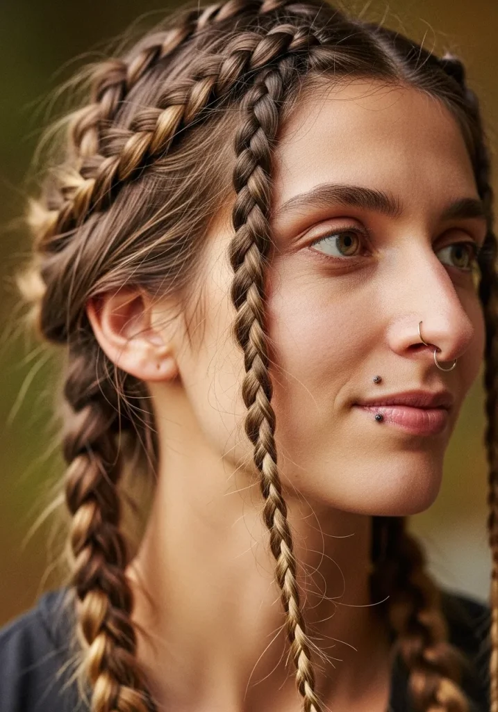 To achieve this, start by dividing your hair into two sections and braid each one using the Dutch technique (braiding under instead of over). Secure the braids at the ends, and you’re ready to go. This hairstyle works best for medium to long hair and looks great with or without accessories.