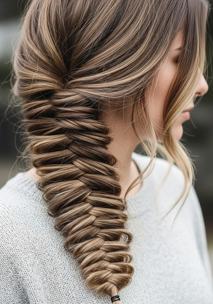 A side fishtail braid is a stylish, easy-to-create hairstyle that’s perfect for school when you want something that’s both trendy and practical. To create this look, gather all your hair to one side of your head and braid it in a fishtail style, using two sections of hair. The side placement makes this braid feel more casual and relaxed, while still offering a polished finish. This hairstyle is great for students who want a unique twist on the classic braid.