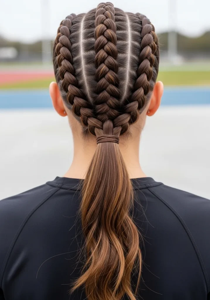 Double Dutch braids are a fantastic way to keep your hair looking neat and stylish, and pairing them with a ponytail gives you an added boost of volume and flair. To create this style, braid your hair into two Dutch braids along either side of your head. Once you reach the end of each braid, tie them together into a ponytail. This creates a sporty, active look that’s perfect for school.