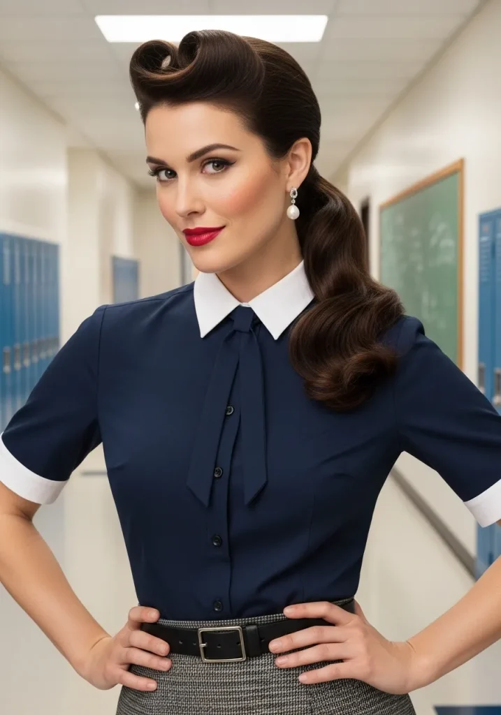 This hairstyle works best with medium to long hair and is perfect for special school events or days when you want to feel extra fashionable. Pair it with a cute scarf or headband for a more authentic pin-up look.