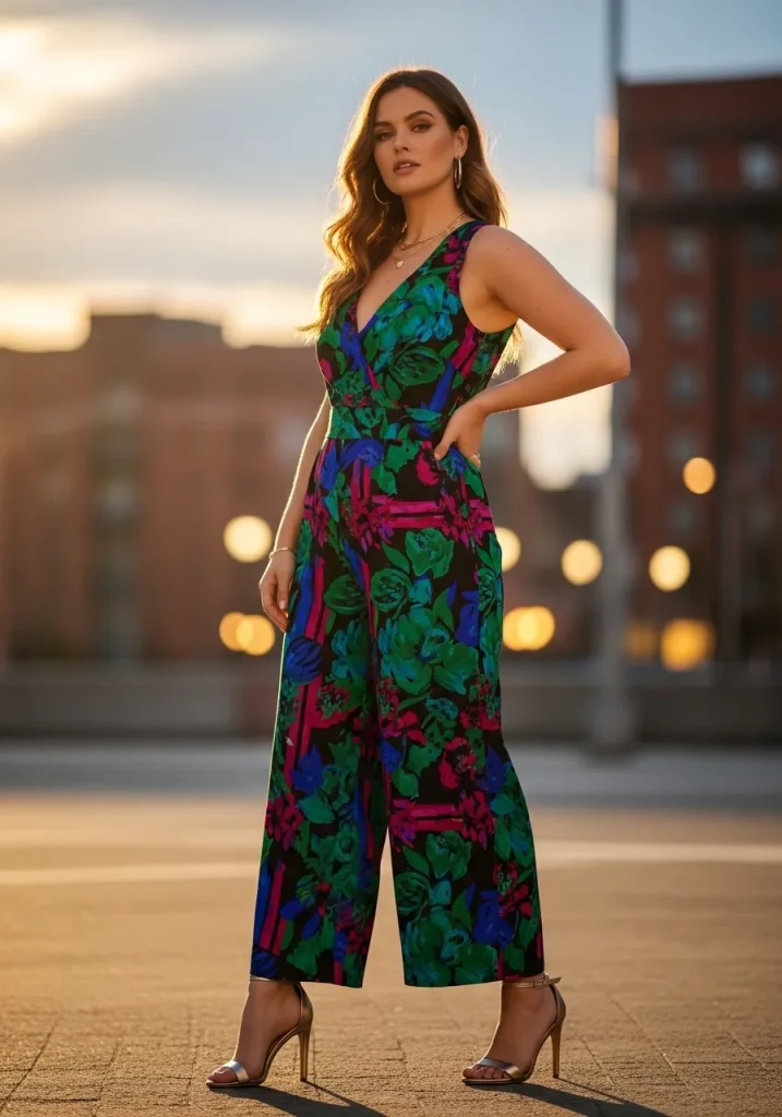A printed jumpsuit paired with heels creates a bold and eye-catching outfit that feels perfect for special occasions. The print adds personality, while the heels elevate the overall look.