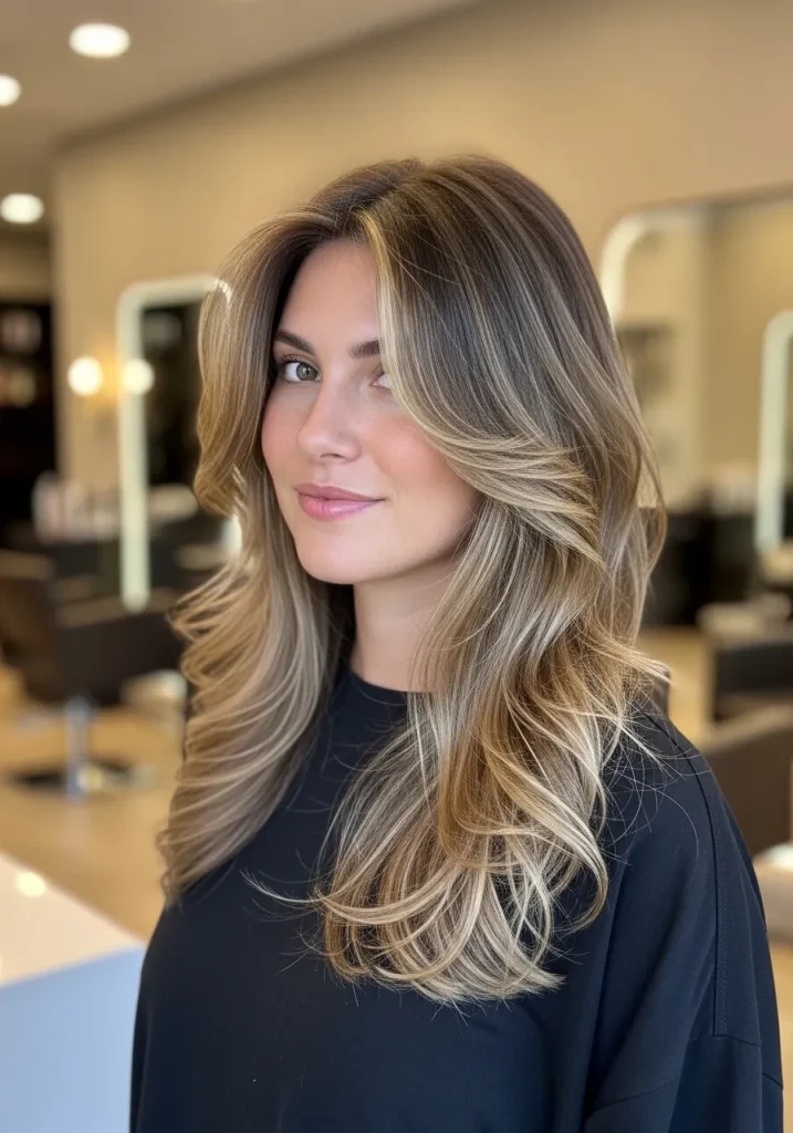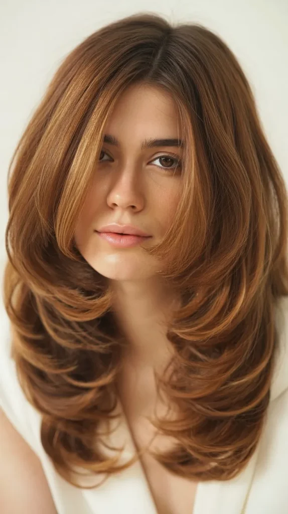 Long layers with face-framing pieces create a soft and feminine look that enhances your natural features. The layers prevent the hair from feeling heavy while adding movement and dimension. It’s perfect if you want to keep your length while refreshing your style. This haircut feels timeless and elegant.
