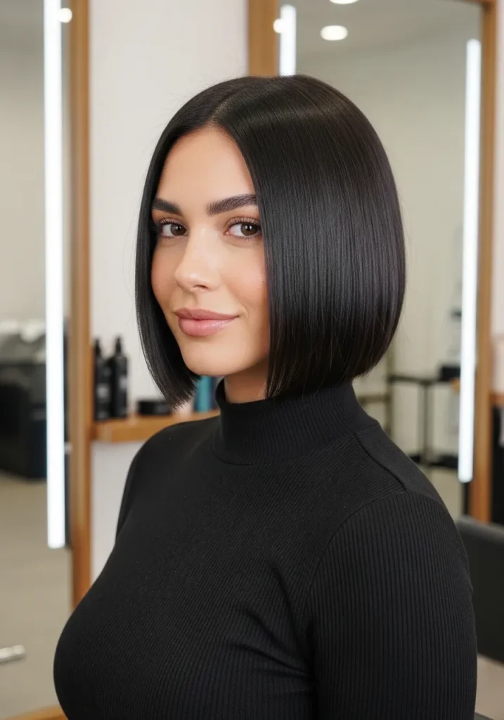 Use a flat iron and smoothing serum to achieve a glossy finish. A middle or side part can easily change the overall vibe. Keeping the ends trimmed ensures a neat look. This haircut feels sleek, refined, and effortlessly chic.