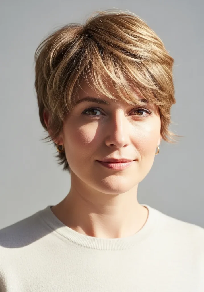 A layered pixie cut is a bold and stylish option that highlights your facial features beautifully. The short length combined with layers adds texture and movement. It’s perfect if you want a low-maintenance yet fashionable haircut. This haircut feels confident and modern.