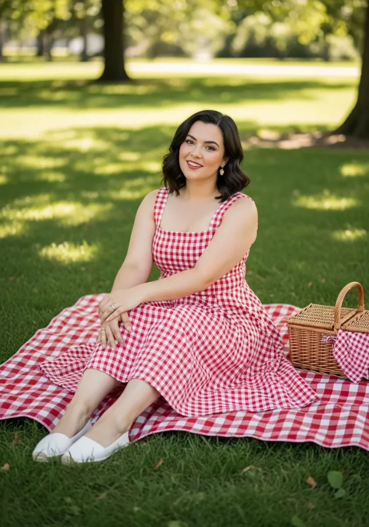 A gingham dress paired with flats gives you that classic picnic-inspired look that feels timeless and adorable. The pattern instantly creates a playful and vintage vibe, making it perfect for outdoor gatherings.