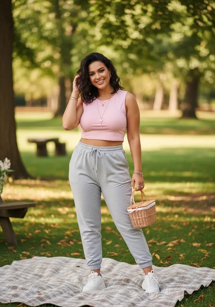 Pair this outfit with sandals and minimal accessories for a clean finish. This look is ideal for picnics where comfort meets style effortlessly.