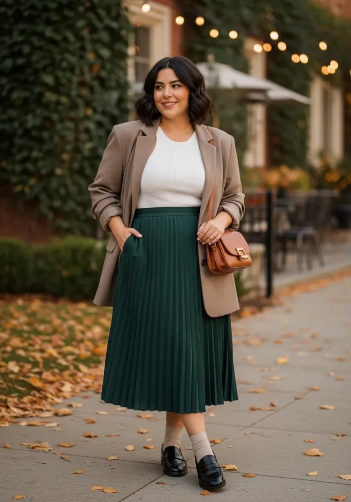 A tailored blazer paired with a pleated skirt creates a classic preppy look that feels both structured and feminine. The blazer adds sharpness, while the pleated skirt brings movement and elegance.