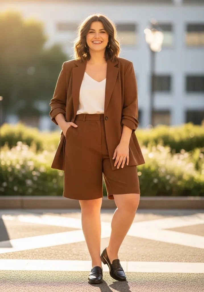 A tailored blazer paired with structured shorts creates a modern take on preppy style. The blazer adds polish while the shorts keep the outfit relaxed and perfect for warmer days.