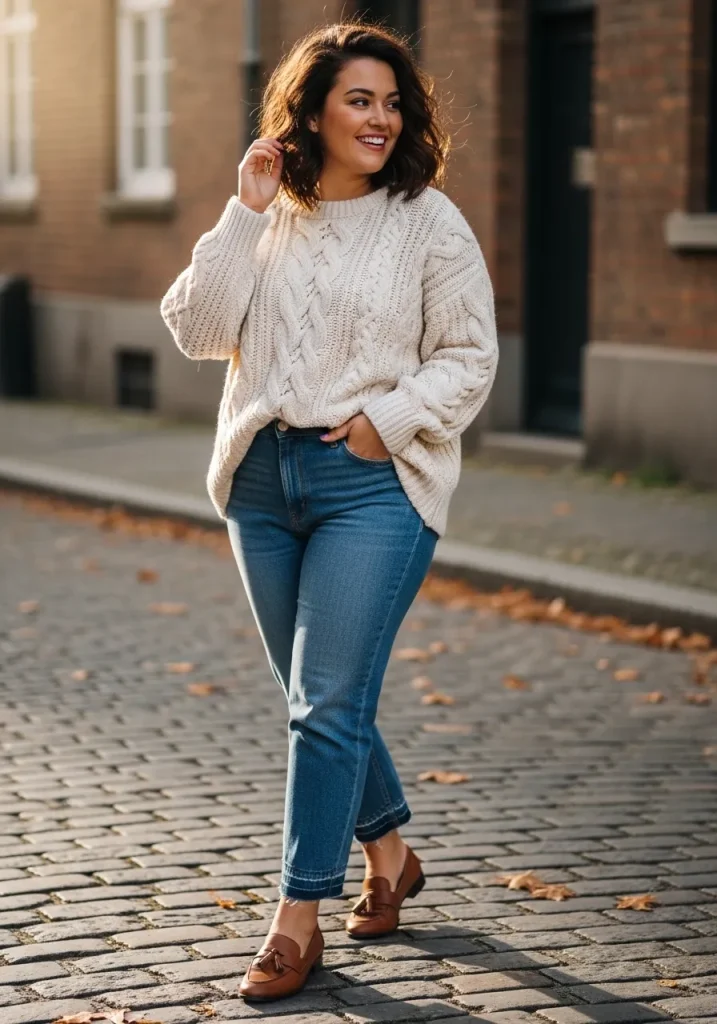 Cable Knit Sweater with Jeans