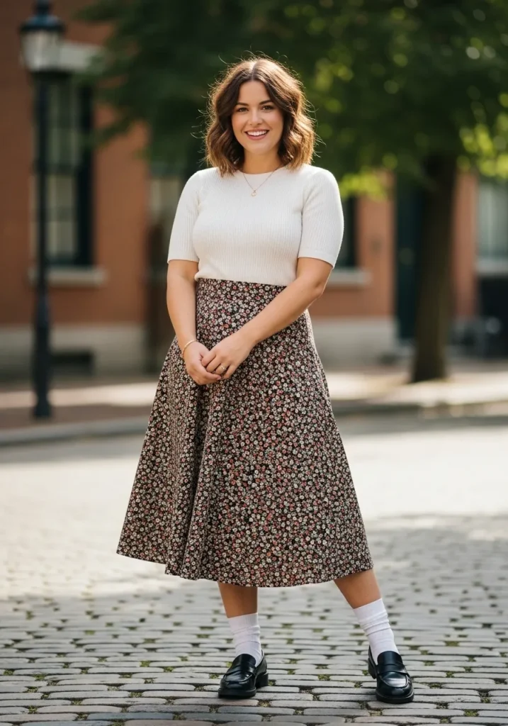 Styling loafers with socks and a skirt creates a playful yet classic preppy look. The socks add a youthful touch while still keeping the outfit polished.