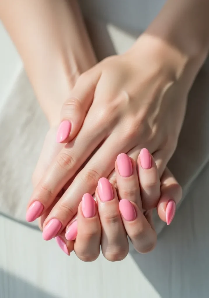 Adding a high-shine glossy top coat makes the nails look smooth, hydrated, and well-maintained. This style pairs beautifully with everyday outfits and requires very little upkeep. You can also layer the polish slightly for a deeper pink tone if desired. It’s a timeless and versatile look that never goes out of style.