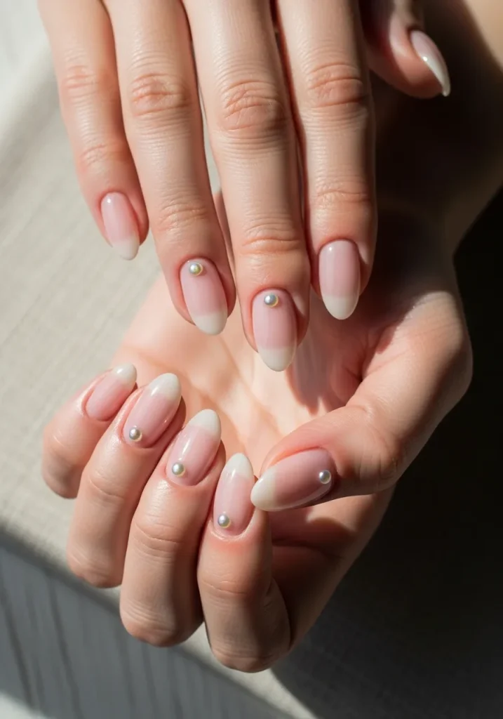 You can place pearls on one nail or create subtle patterns across multiple nails. Pairing them with nude or soft pink bases enhances their beauty. The glossy finish completes the polished look. It’s a refined and graceful design.